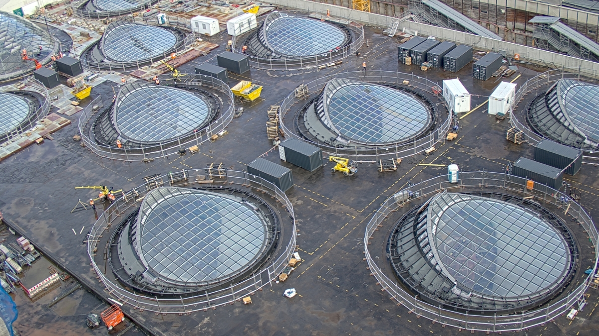 März 2025: Kran in D11 ist ebenfalls abgebaut und die letzte Aussparung im Dach geschlossen.